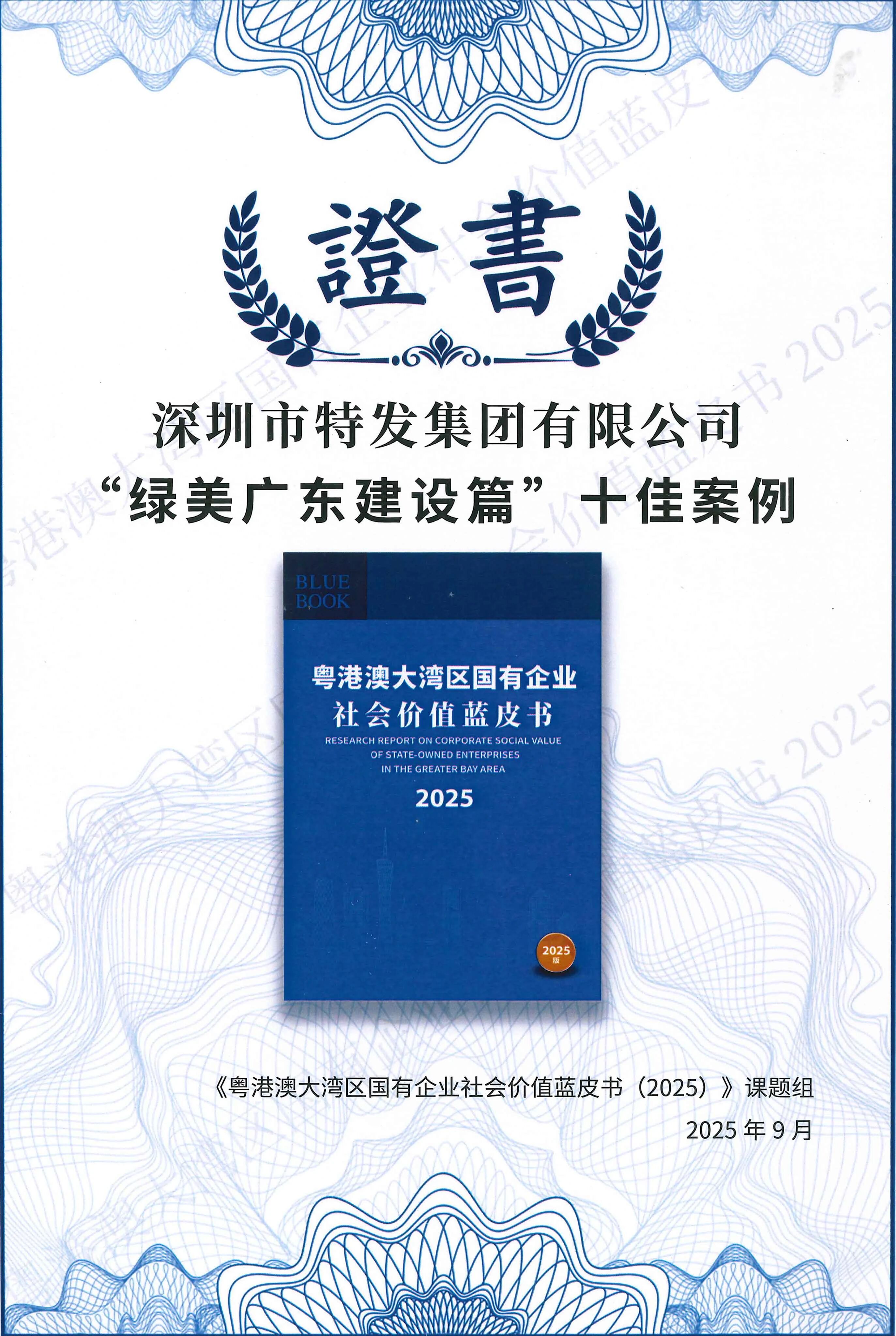 會上,特發(fā)集團申報的《踐行綠色低碳理念 以科技創(chuàng)新驅(qū)動企業(yè)高質(zhì)量可持續(xù)發(fā)展》案例,成功入選由廣東省國資委發(fā)布的《粵港澳大灣區(qū)國有企業(yè)社會價值藍(lán)皮書 (2025)》“綠美廣東建設(shè)篇”十佳案例。