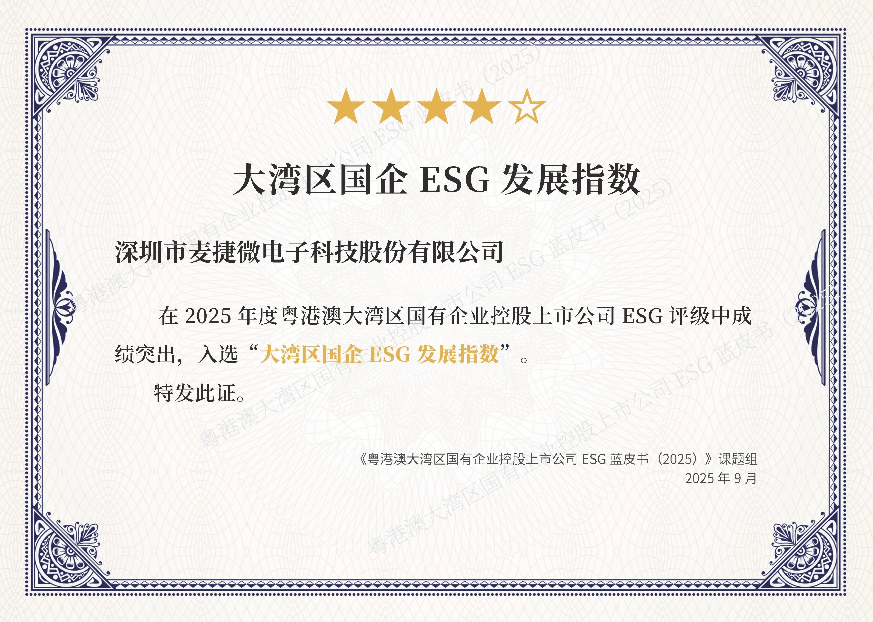此外,在本次論壇發(fā)布的多項權(quán)威指數(shù)中,特發(fā)集團旗下麥捷科技憑借在ESG領(lǐng)域的優(yōu)秀表現(xiàn),首次入選“大灣區(qū)國企ESG發(fā)展指數(shù)”榜單。本次入選,不僅是對麥捷科技ESG治理、社會價值創(chuàng)造、風(fēng)險管理等工作的高度認(rèn)可,更是對麥捷科技踐行可持續(xù)發(fā)展理念的充分肯定。