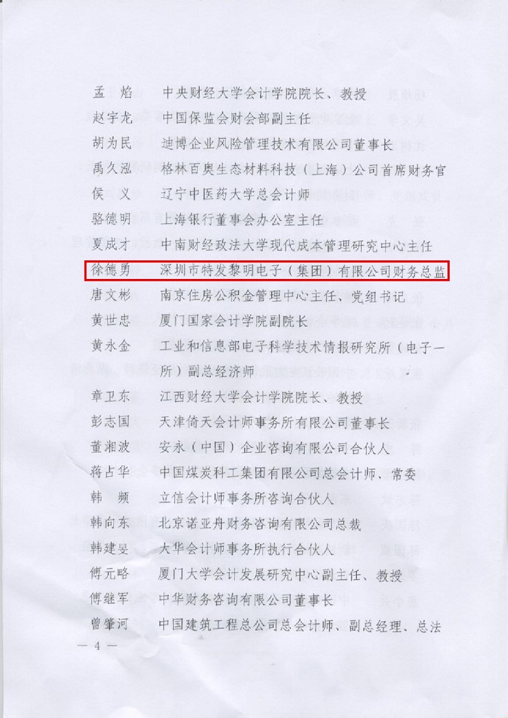 特發(fā)黎明公司徐德勇獲聘財(cái)政部管理會(huì)計(jì)咨詢專家