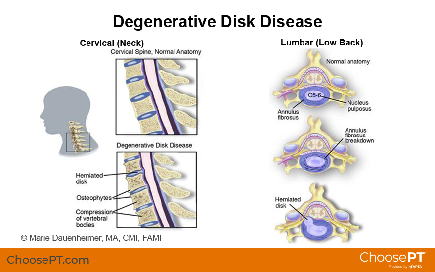 DDD is a natural result of aging. However, you can make choices that lessen its impact on your life and slow its progression. Your physical therapist can offer you advice on staying strong and fit. Some physical therapy clinics conduct seminars to help people learn how to take care of their backs and necks.